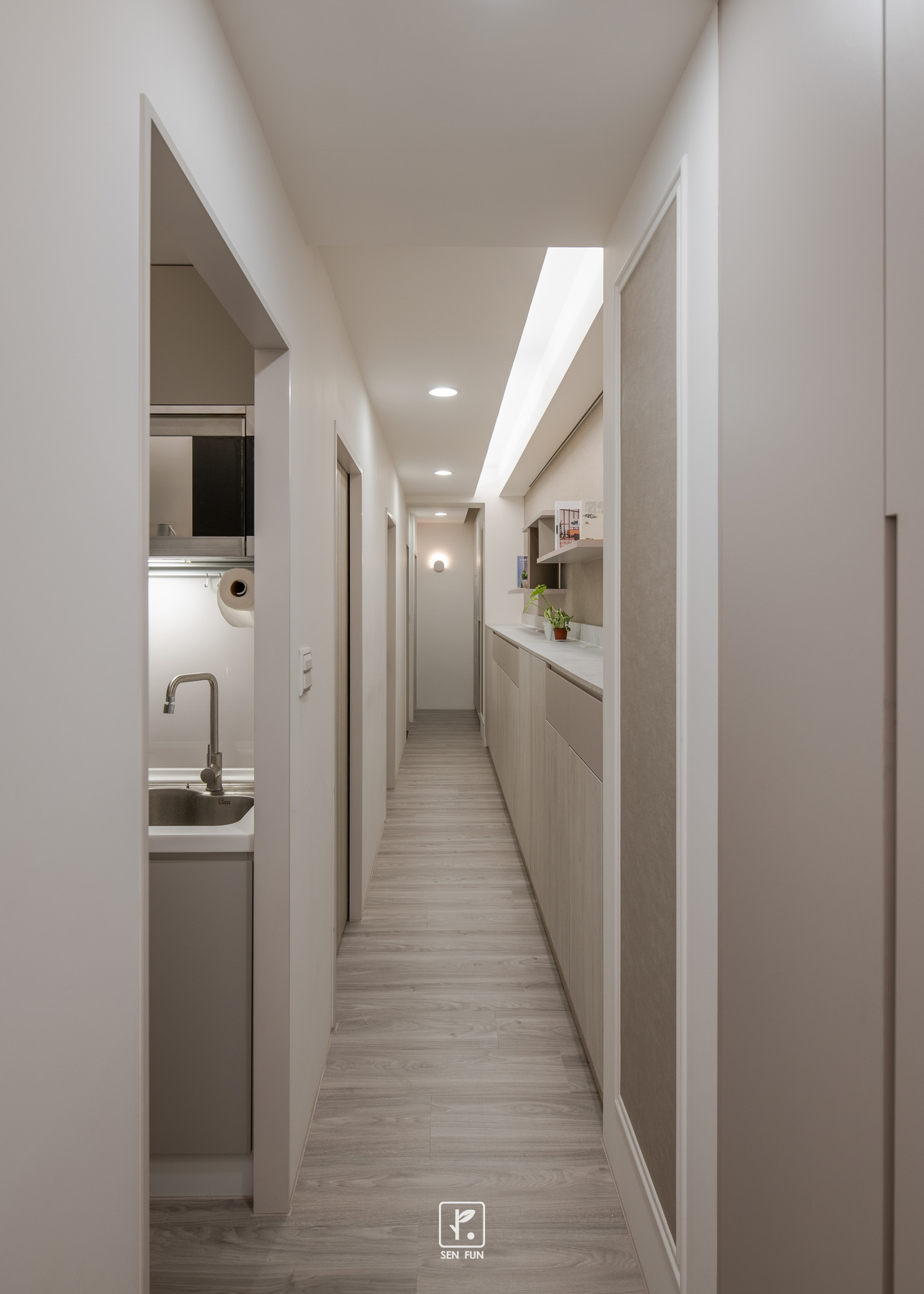 Less is more,透過裝潢中斷捨離的過程,將收納及歸納有效的安排在櫃內,一樣的空間,一樣的格局,