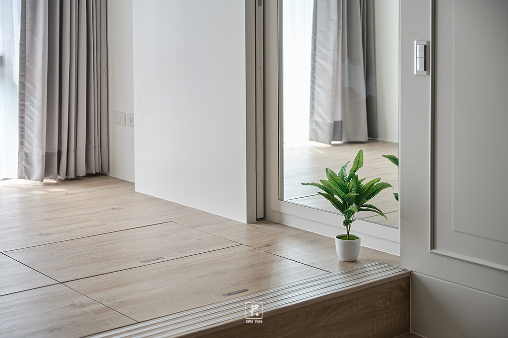 - 多功能室,不僅能坐在窗邊看書,也能邊照鏡子做個瑜珈,架高地版還能做大空間的收納