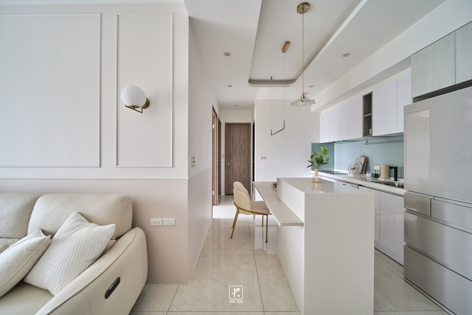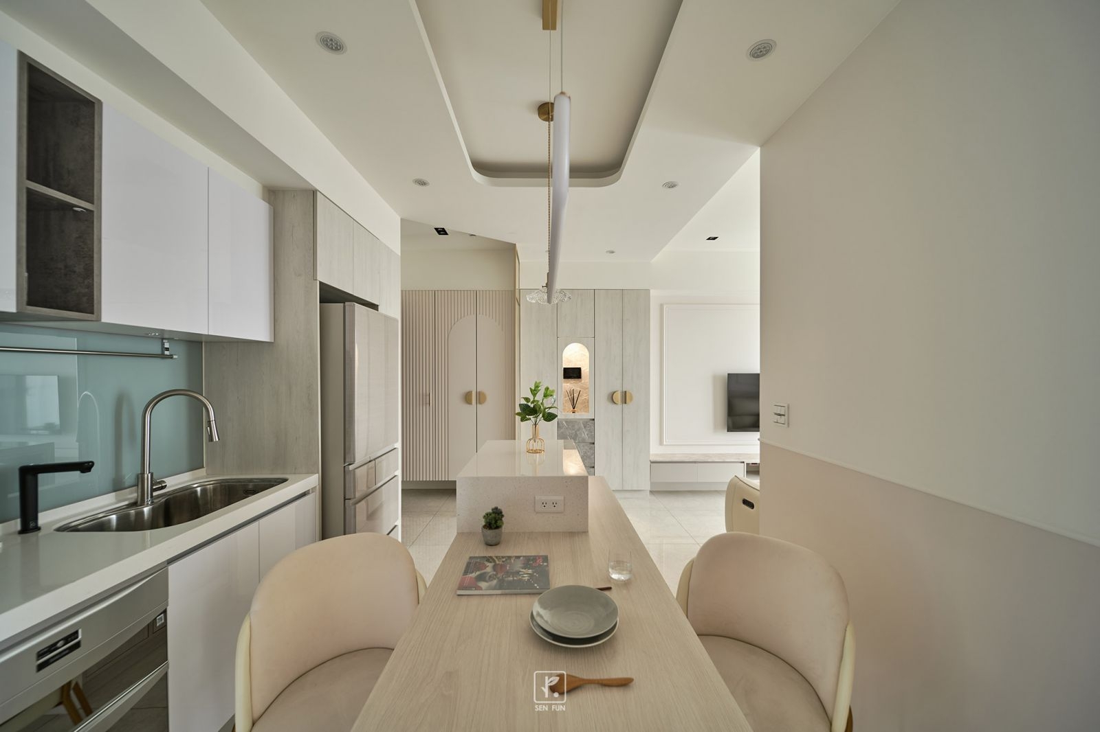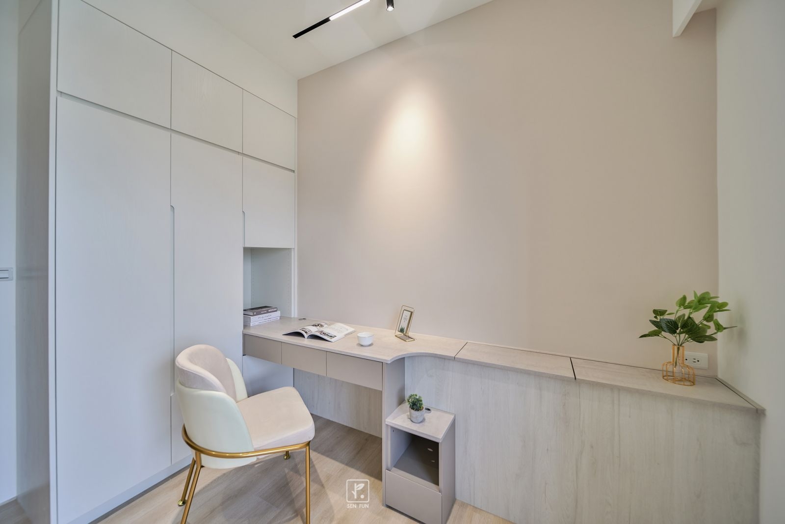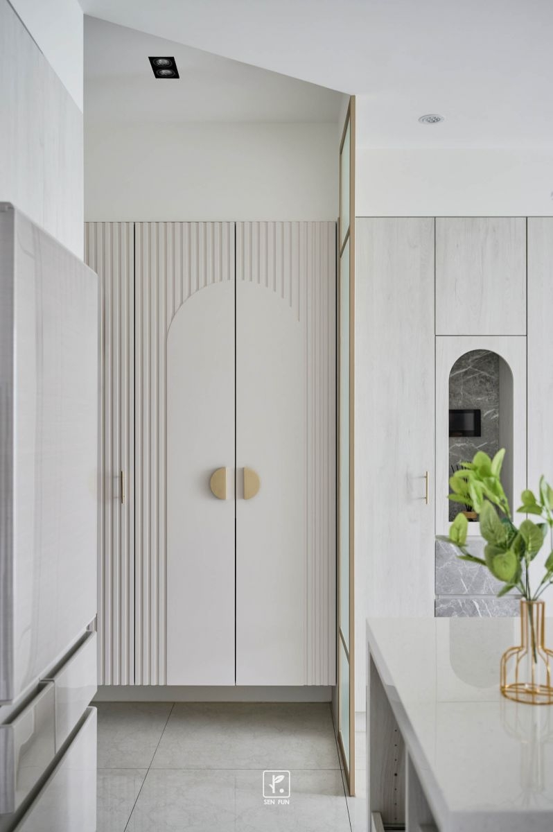在融入了線板設計和輕奢華元素的室內空間中,每一處細節都散發著柔和與設計師的小巧思