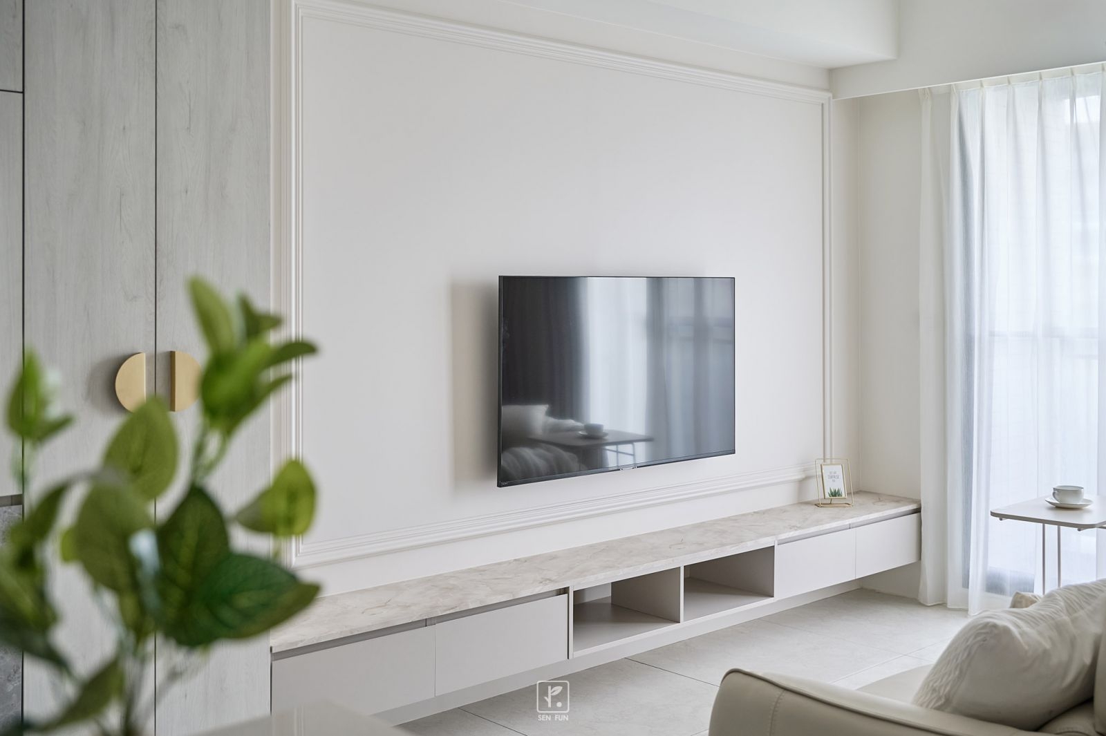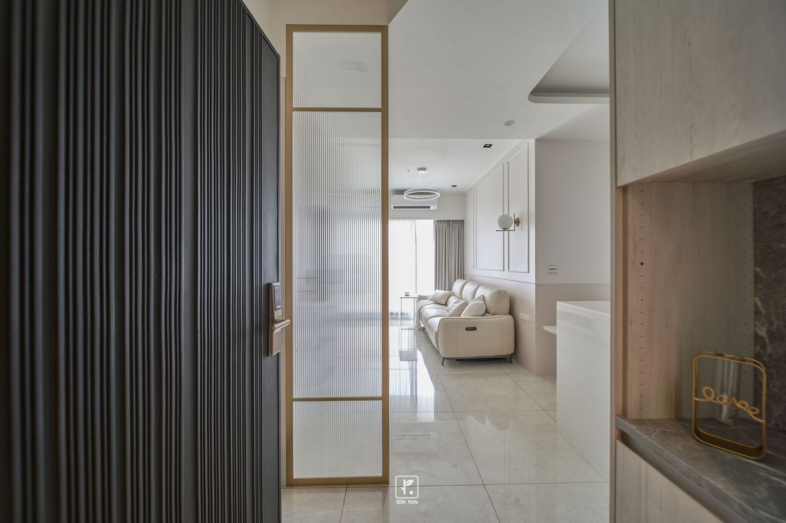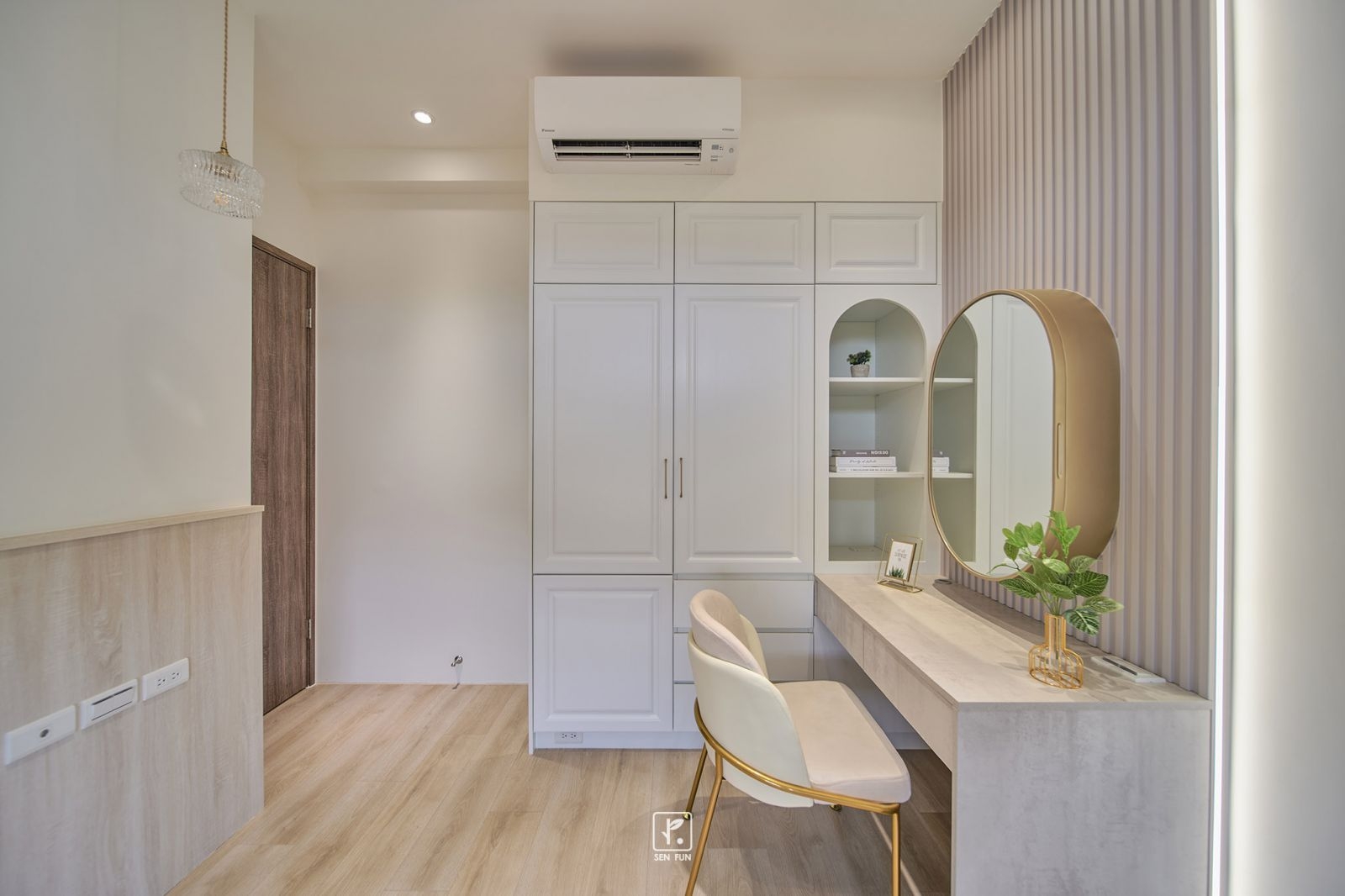 在融入了線板設計和輕奢華元素的室內空間中,每一處細節都散發著柔和與設計師的小巧思
