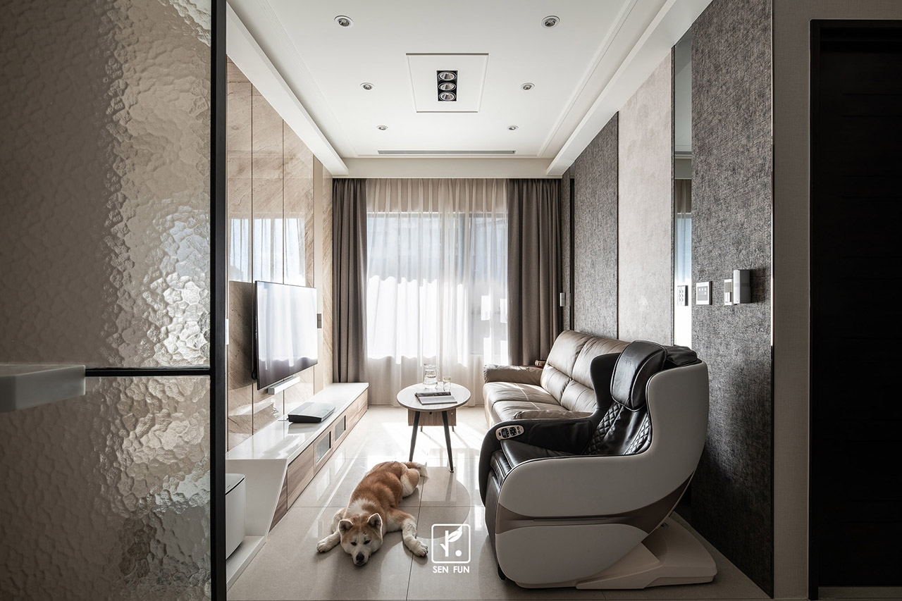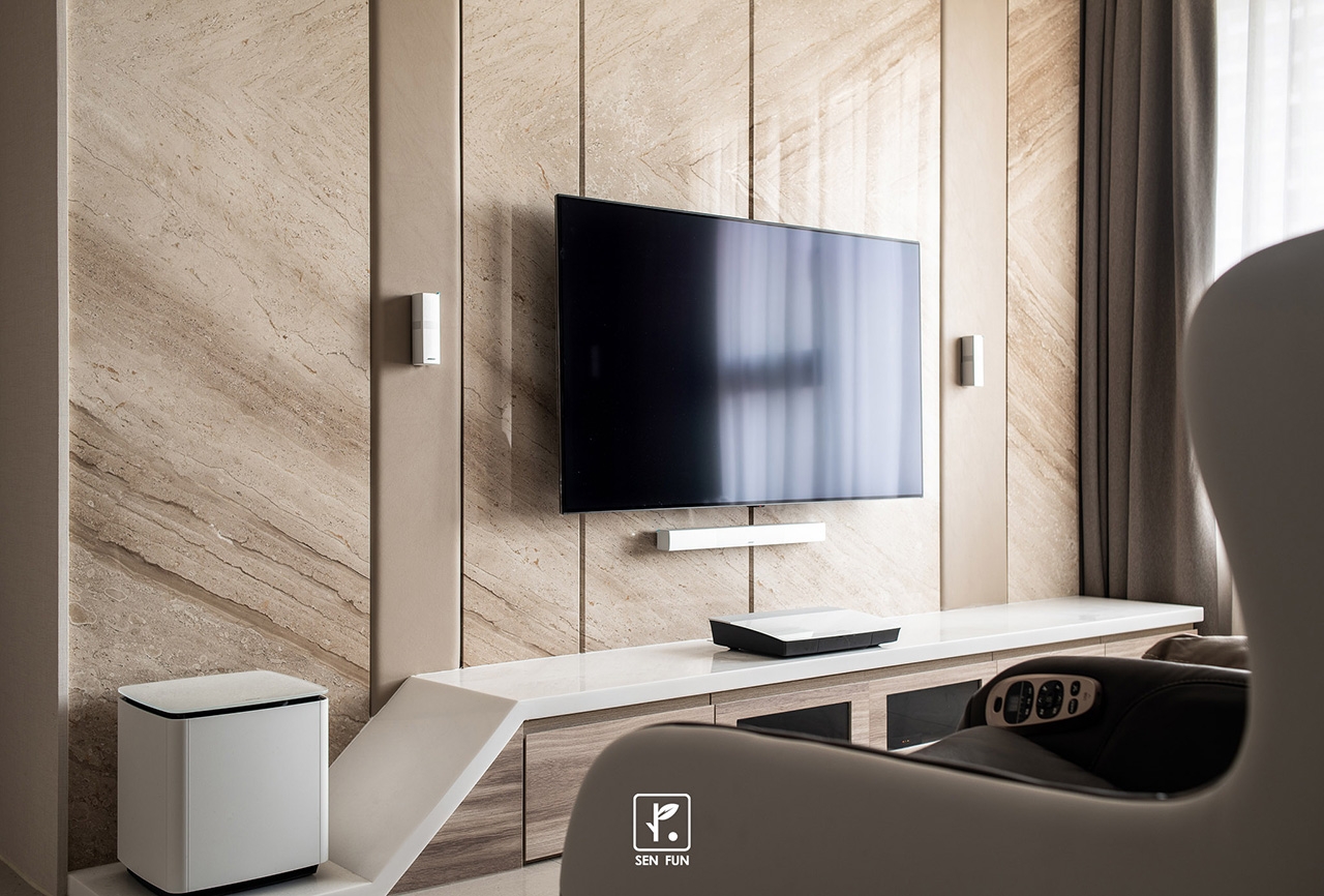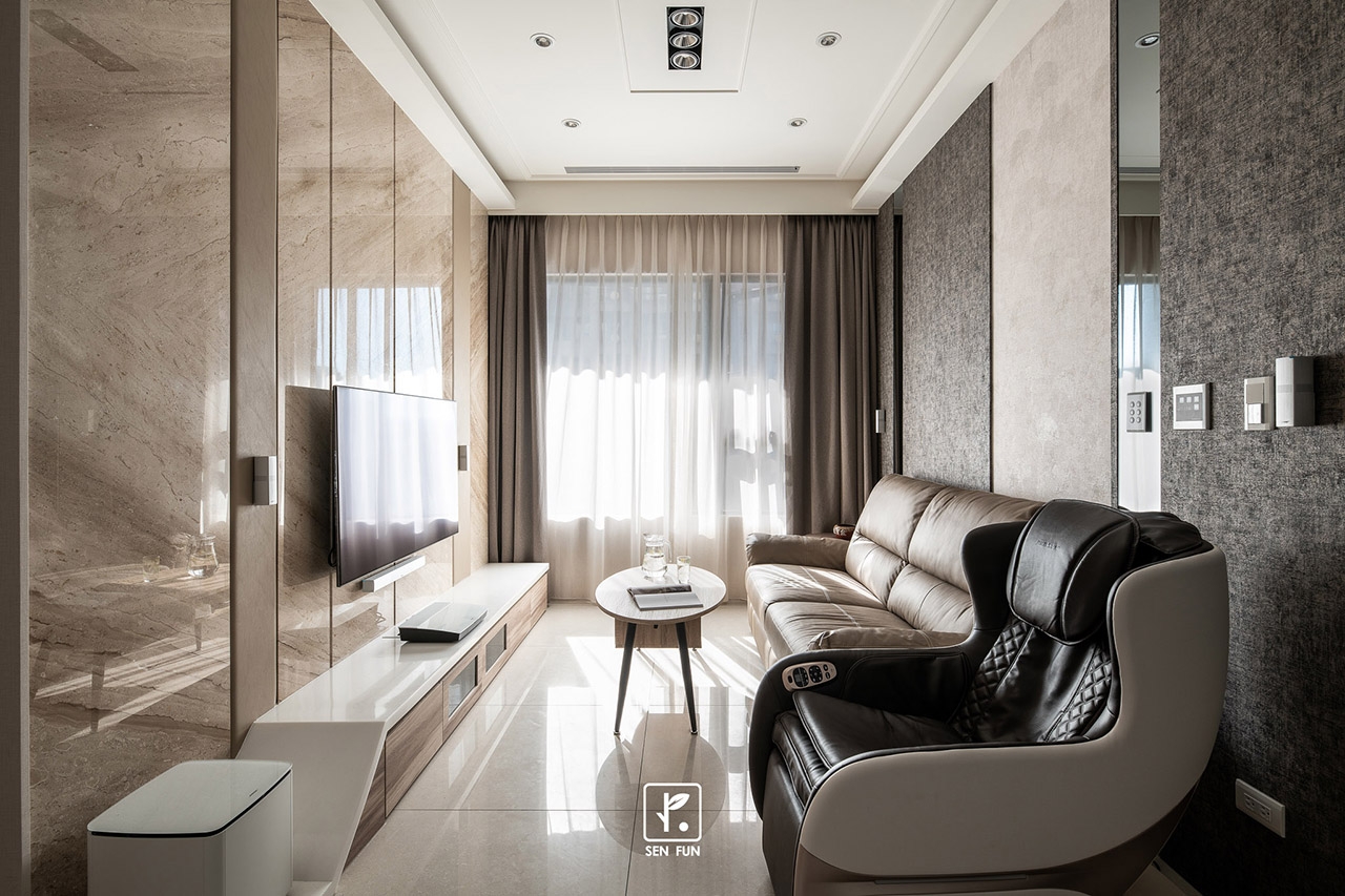 特殊大理石花紋+同色調的繃皮點綴成就大氣的室內風格