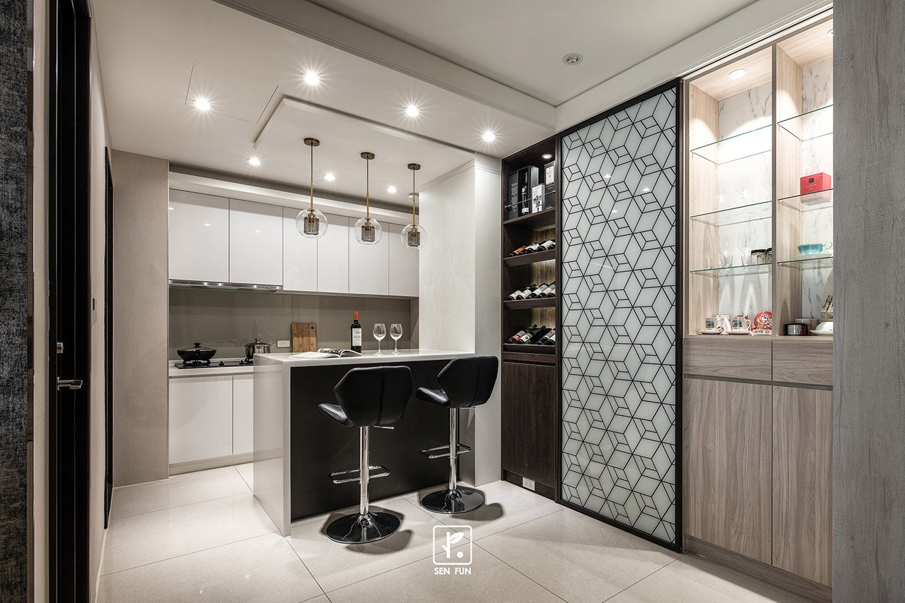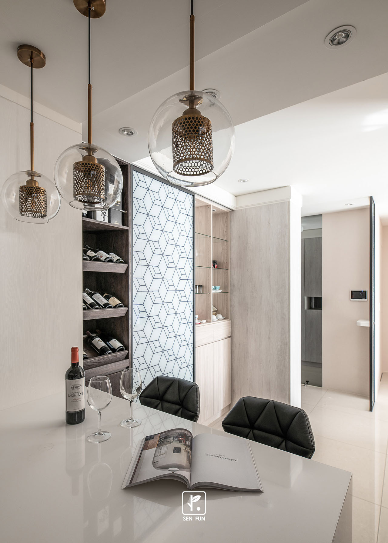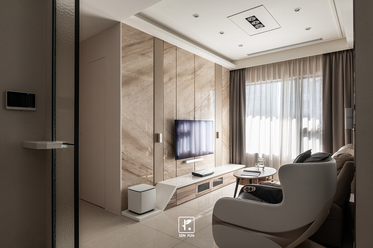 特殊大理石花紋+同色調的繃皮點綴成就大氣的室內風格